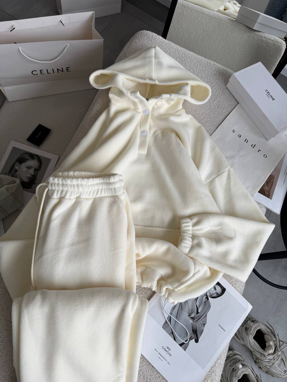 Костюм дуже теплий, для зими те що треба. Взяла колір молоко — виглядає дуже стильно і дорого. Розмір 42-44 сів ідеально, хоча він вільний, як я і хотіла. Рекомендую 💯